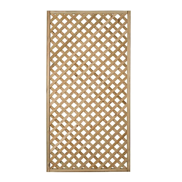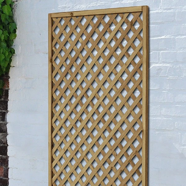 Flat diamond lattice, fixed into to rebated frame. Manufactured from pressure treated. FSC certified timber.Flat diamond timber lattice plant support.Fixed into a rebated timber frame.Pressure treated for a longer life