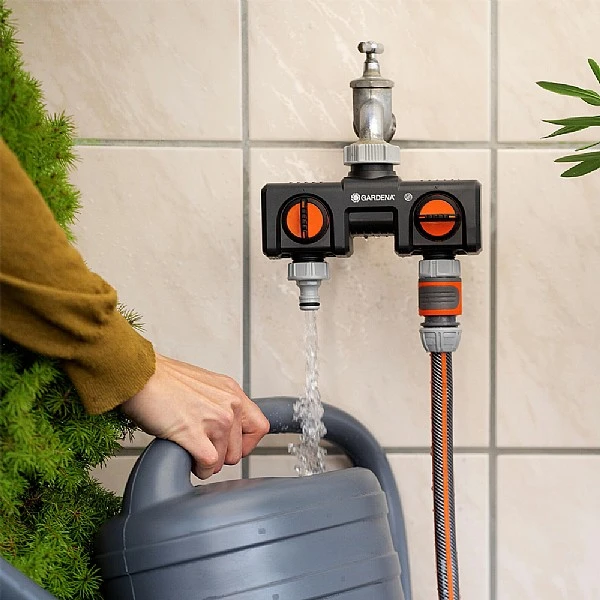 - The connector also allows you to attach two Gardena Irrigation Computers or Watering Timers